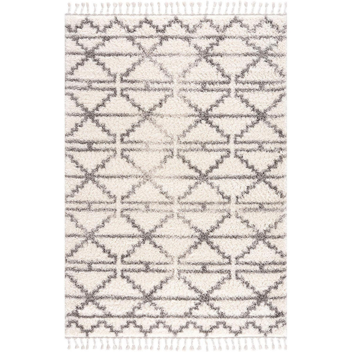 Die Kombination aus verspielten Geo-Mustern mit natürlichen Farben verleiht dem modernen Shaggy Teppich einen lässigen Charme.