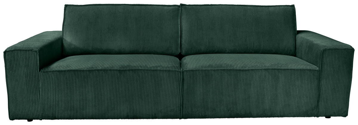 Können Sie sich etwas Besseres vorstellen als auf diesem dunkelgrünen 3-Sitzer-Sofa mit Cord-Bezug alles um sich herum zu vergessen?