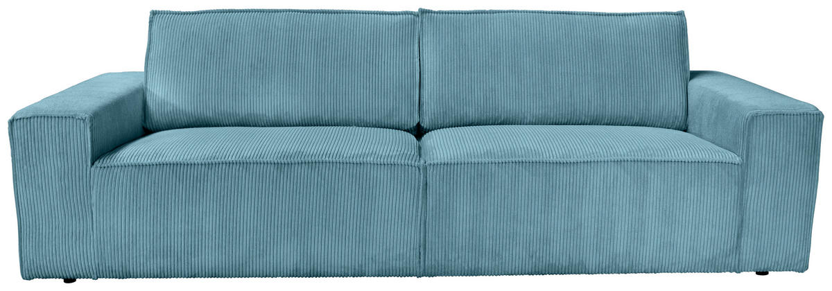 Genießen Sie Ihr Rendezvous mit der wohligen Unbeschwertheit des Seins auf diesem türkisen 3-Sitzer-Sofa mit Cord-Bezug!