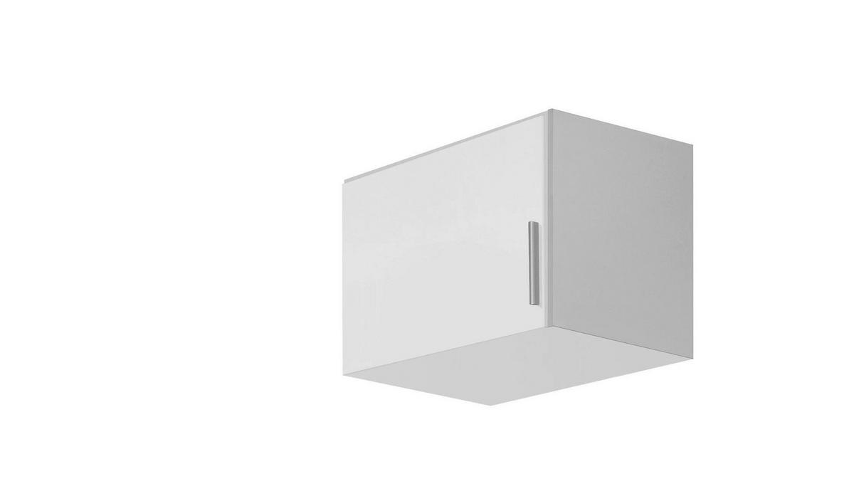 Mit diesem Aufsatzschrank in Weiß erweitern Sie Ihre Inneneinrichtung mit formschöner Raffinesse. Geradlinigkeit prägt das Möbel, wodurch es seinen kantigen Charakter erhält. Die Oberfläche der Front ist mit einer Hochglanzlackierung veredelt, wodurch die cleane Optik gekonnt untermalt wird. Dabei passt die Griffleiste in Alufarben in das dezente Erscheinungsbild und verleiht dem Schrank einen modernen Touch.