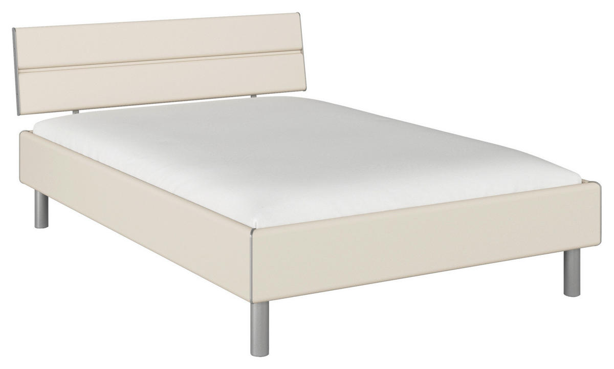 Alufarben wird das Design stimmig vollendet. Entdecken Sie dieses Bett (ca. 140 x 200 cm) in Champagnerfarben mit Holz-Kopfteil, das noch viel mehr kann, als gut auszusehen!