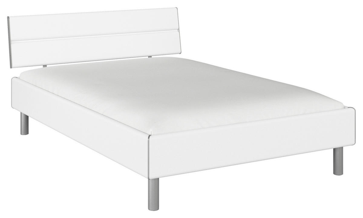 Alufarben. Entschleunigung beginnt jetzt – mit diesem Bett (ca. 140 x 200 cm) in Weiß inklusive Holz-Kopfteil, das Sie sanft durch die Nacht begleitet!