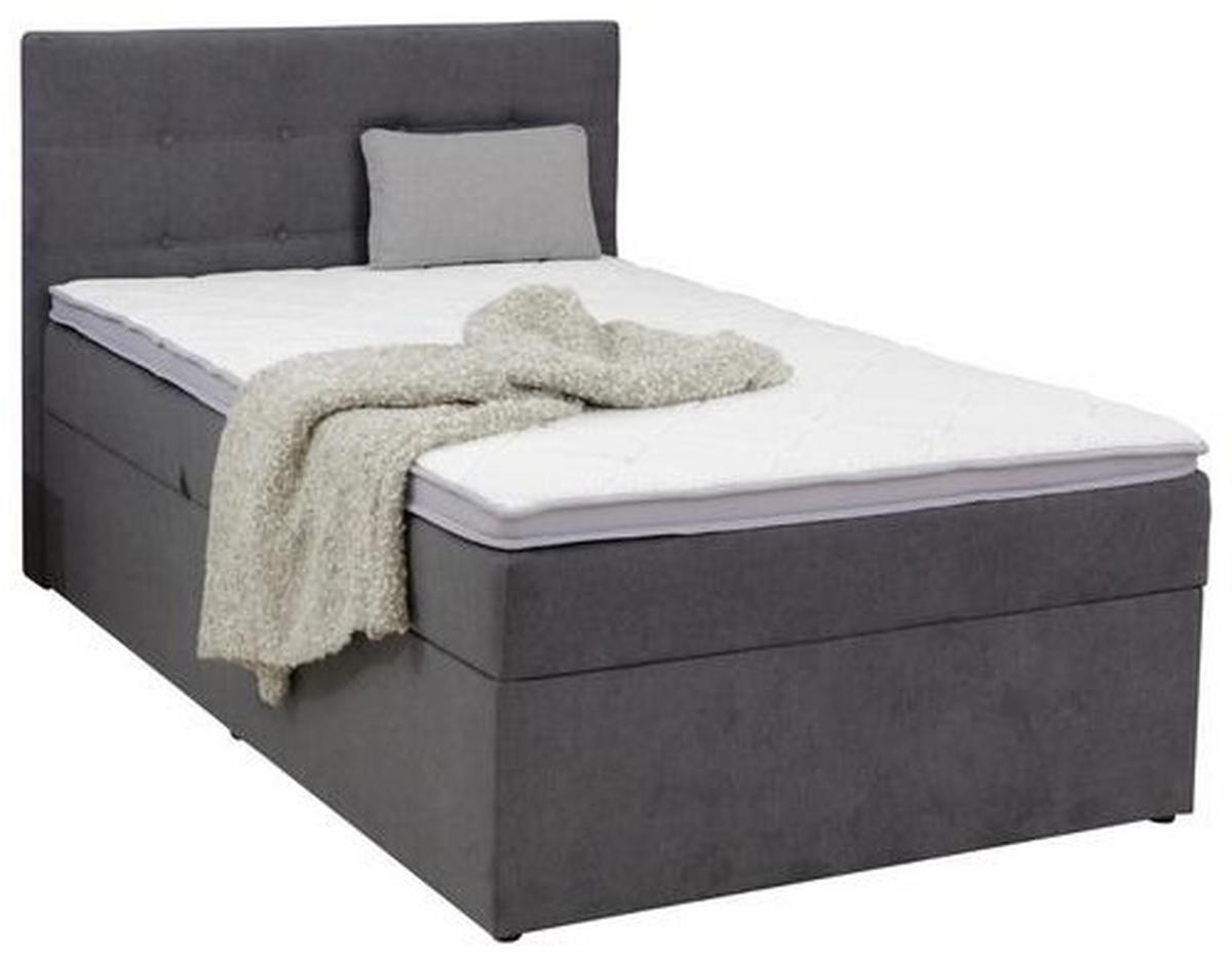 BOXSPRINGBETT 100/200 cm, in Anthrazit, Matratze, Bettkasten, Topper, H2 + H3 = mittel + fest