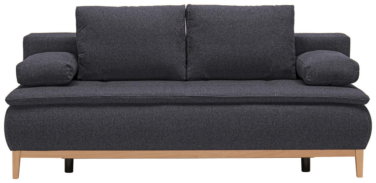 Großartiges Design Das Polstermöbel wird mit dem zeitlosen Kolorit in Dunkelgrau und den beigen Kontrastnähten in verschiedenen Einrichtungskonzepten zum Highlight. Hohe, eckige Füße aus lackierter Buche in Eichefarben setzen stimmige Akzente und schaffen leichte Bodenfreiheit.