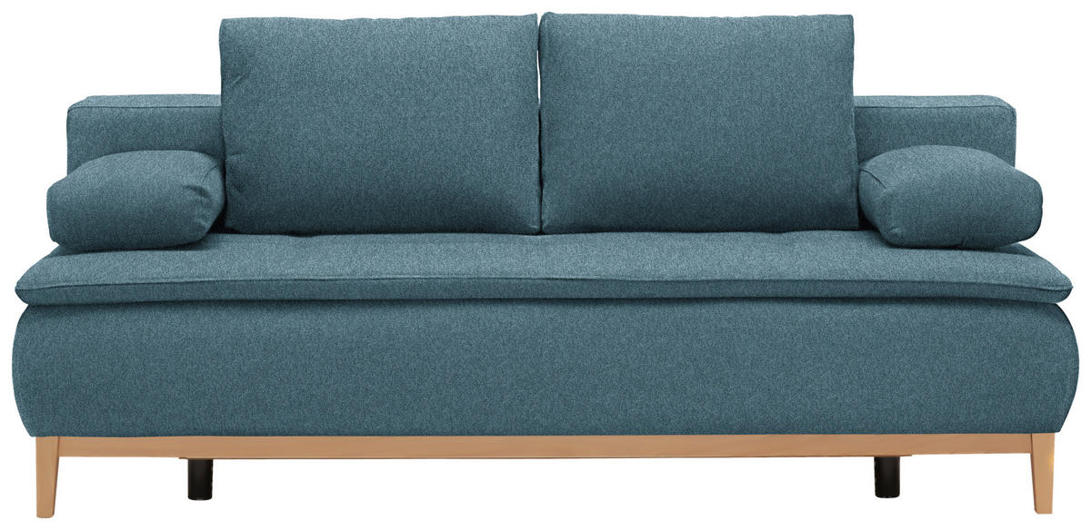 Dieses Design kann sich sehen lassen Mit dem prägnanten Kolorit in Türkis und den beigen Kontrastnähten bietet das Möbel eine ästhetische Optik, die sich geschmackvoll in unterschiedliche Einrichtungskonzepte einfügt. Mit den hohen, eckigen Füßen aus lackierter Buche in Eichefarben ist ein sicherer Stand gegeben und das Design wird stilgerecht komplettiert.