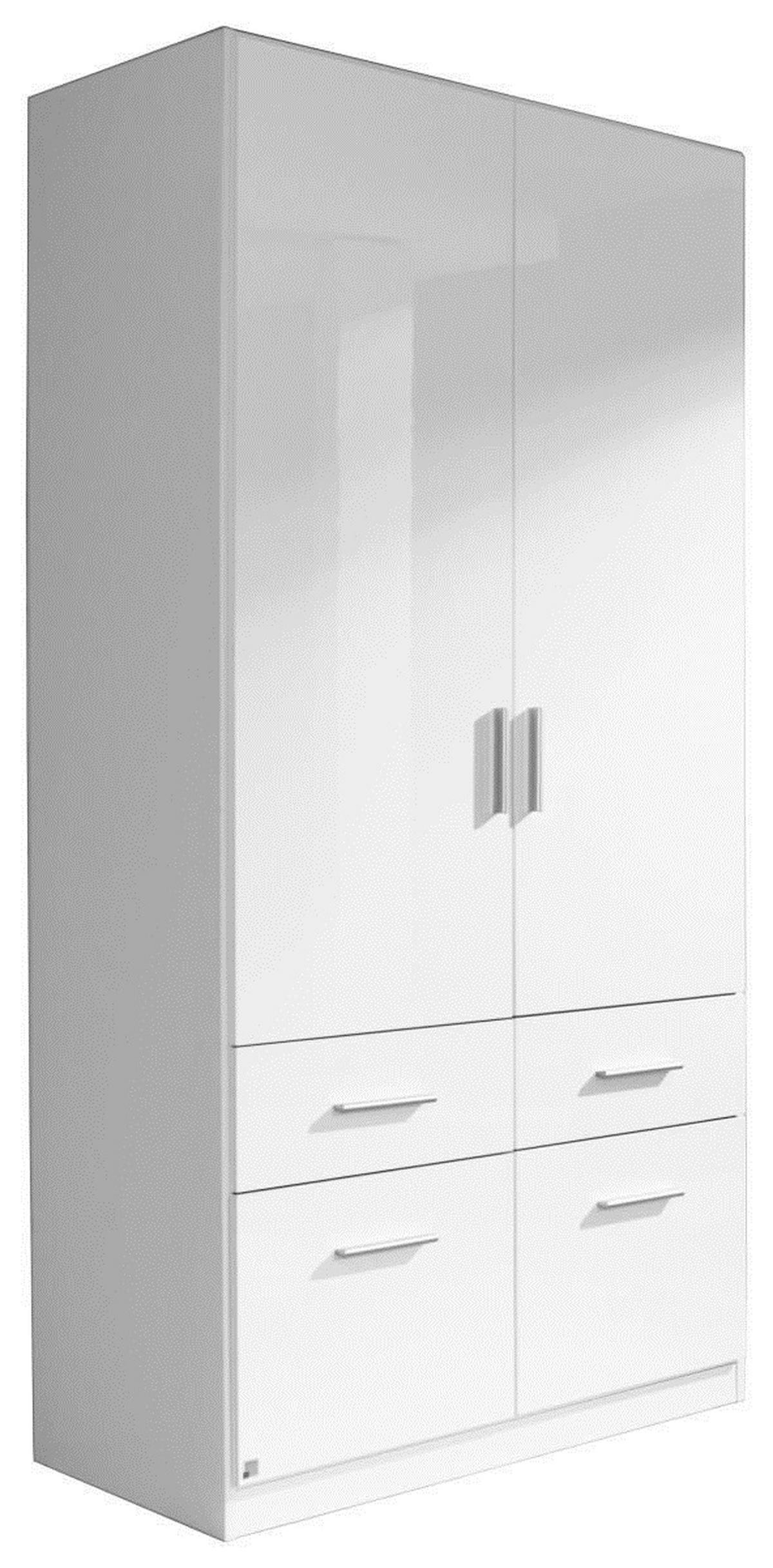 Ordnung halten leicht gemacht: Hinter den beiden Drehtüren wartet eine Kleiderstange auf Ihre Kleider, Blusen oder Hemden. Shirts, Pullover oder Socken verstauen Sie griffbereit in den 4 Schubladen. Dieser 2-türige Kleiderschrank in Weiß bietet die perfekte Stauraumlösung im modernen Design!