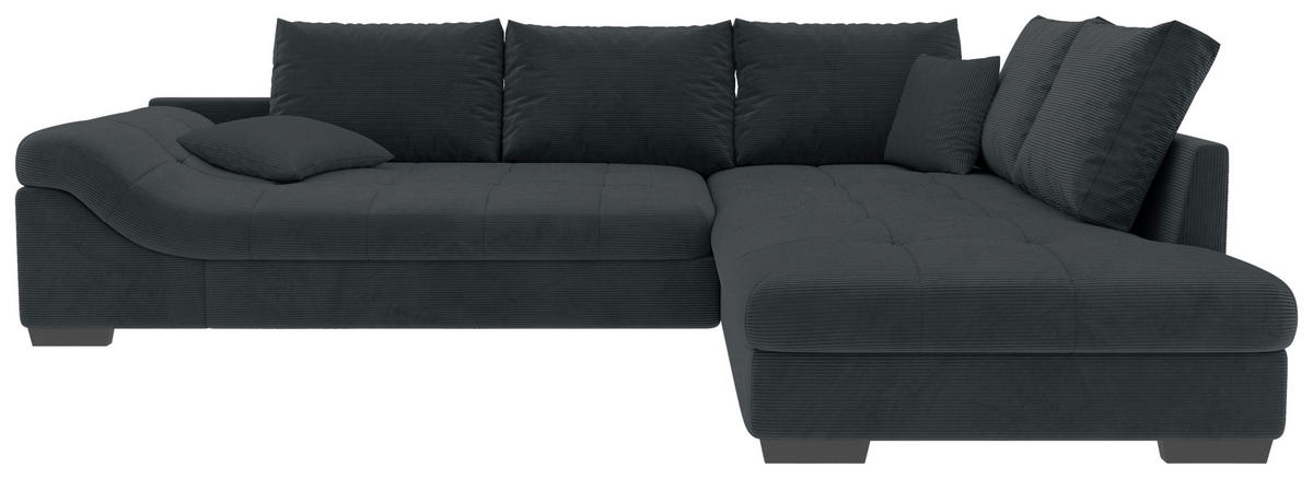 Können Sie sich etwas Besseres vorstellen als auf diesem anthrazitgrauen Ecksofa mit Cord-Bezug alles um sich herum zu vergessen?