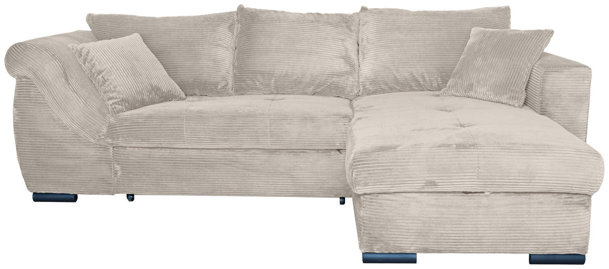 ECKSOFA Beige Cord Zierkissen, Rückenkissen, Bettkasten, Schlaffunktion, Rücken echt, Liegefläche im Originalstoff  - Beige/Schwarz, KONVENTIONELL, Textil/Metall (258/168cm) - Carryhome