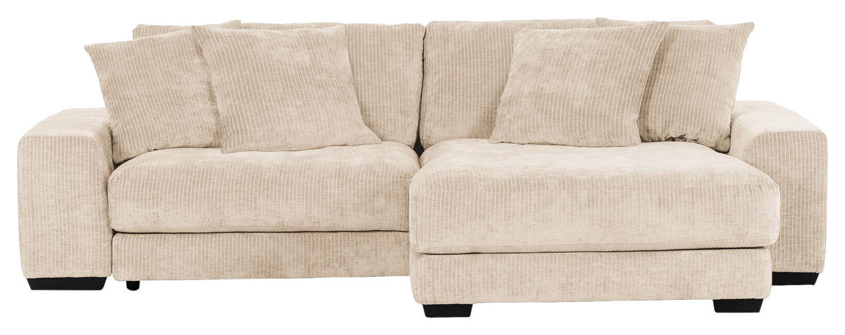 Ein It-Piece, das Ihren Erwartungen gerecht wird: Dieses beige Ecksofa mit Flachgewebe-Bezug tut einiges fürs individuelle Wohnglück!
