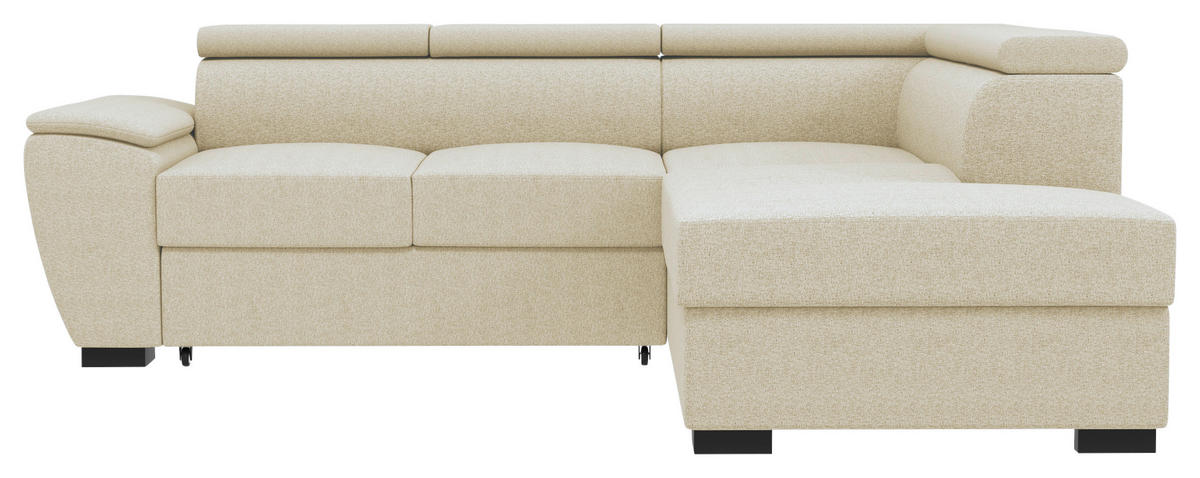Ihr Aushängeschild, was Wohnbehagen betrifft: ein beiges Ecksofa mit Flachgewebe-Bezug, das es in sich hat!