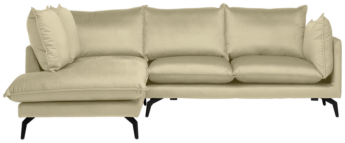 Sollte dieses beige Ecksofa mit Samt-Bezug Ihr Favorit sein, spricht alles dafür, schnell eine Entscheidung fürs künftige Wohnbehagen zu treffen!