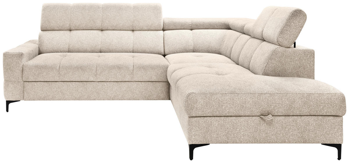 Ab auf Ihr beiges Ecksofa mit Struktur-Bezug und die ersehnte Me-Time genießen!