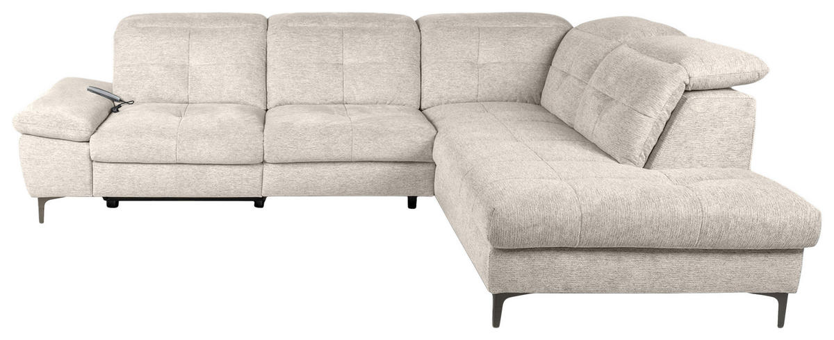 Dieses beige Ecksofa mit Webstoff-Bezug zaubert Ihnen bei jeder Gelegenheit zum Ausspannen ein Lächeln ins Gesicht!