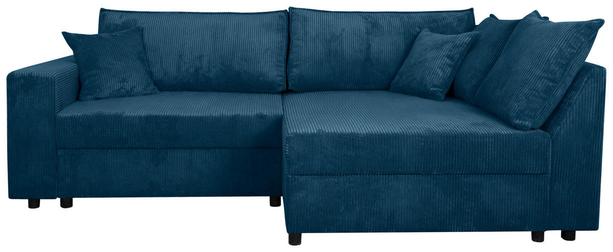 Können Sie sich etwas Besseres vorstellen als auf diesem blauen Ecksofa mit Cord-Bezug alles um sich herum zu vergessen?