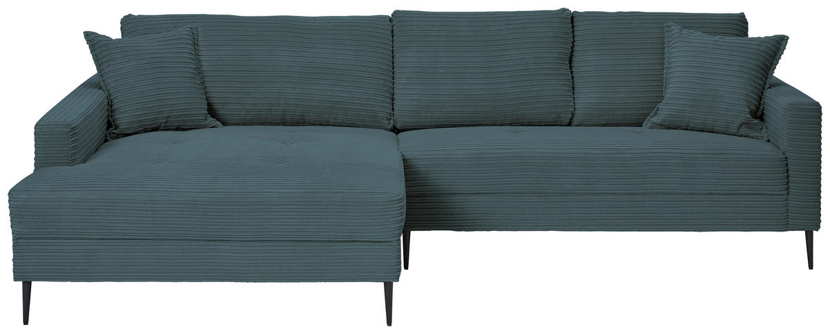 Wo eine ausgeglichene Life-Balance und häusliches Wohlempfinden gefragt sind, führt an diesem blauen Ecksofa mit Cord-Bezug kein Weg vorbei!