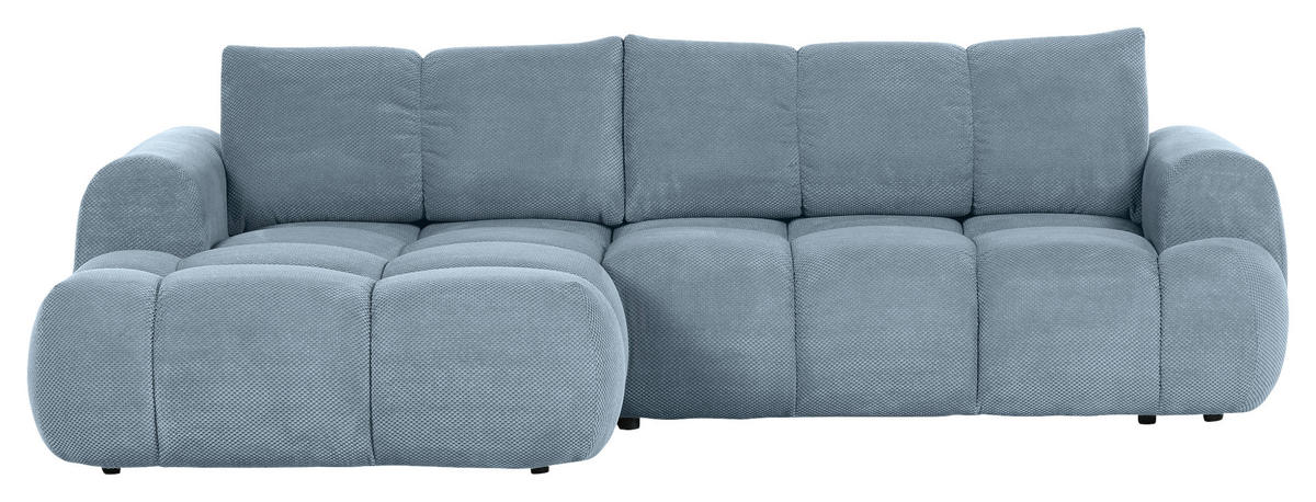 Als treue Begleitung für wonnige Time-outs daheim gesellt sich dieses blaue Ecksofa mit Flachgewebe-Bezug gerne zu Ihnen!