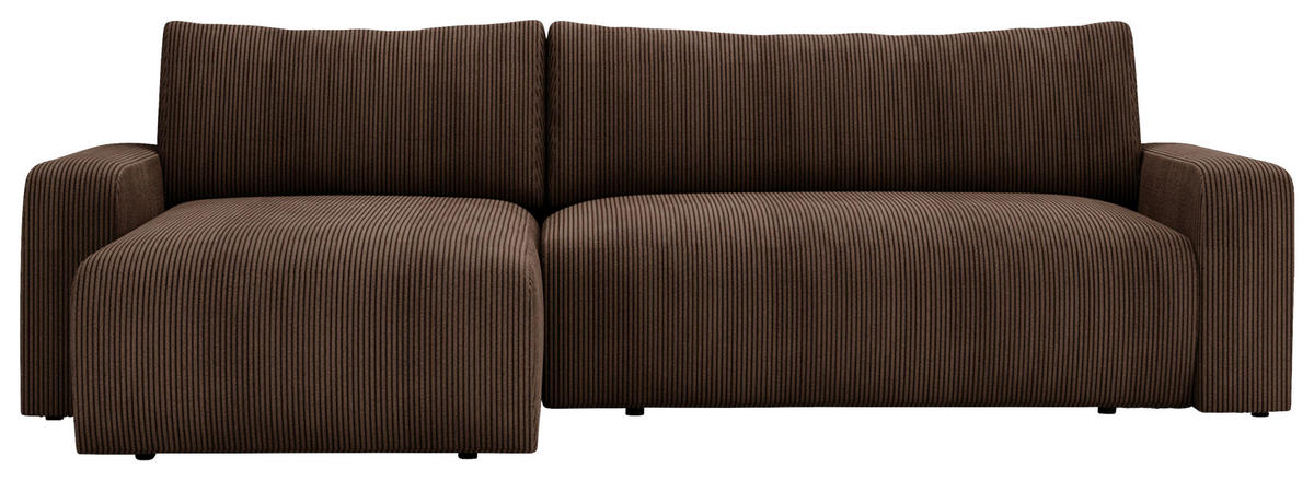 Ihr Aushängeschild, was Wohnbehagen betrifft: ein braunes Ecksofa mit Cord-Bezug, das es in sich hat!