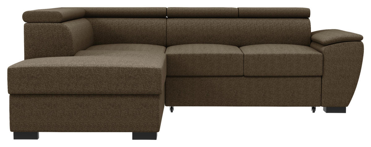Ihr Aushängeschild, was Wohnzufriedenheit betrifft: ein braunes Ecksofa mit Flachgewebe-Bezug, das es in sich hat!