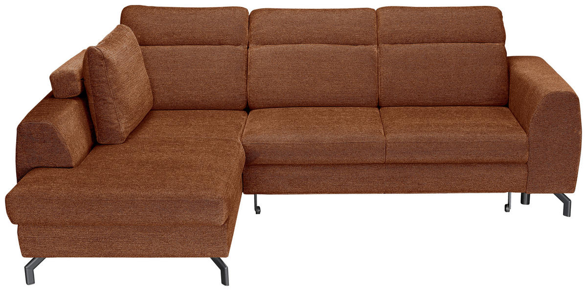 Können Sie sich etwas Besseres vorstellen als auf diesem cognacbraunen Ecksofa mit Chenille-Bezug alles um sich herum zu vergessen?