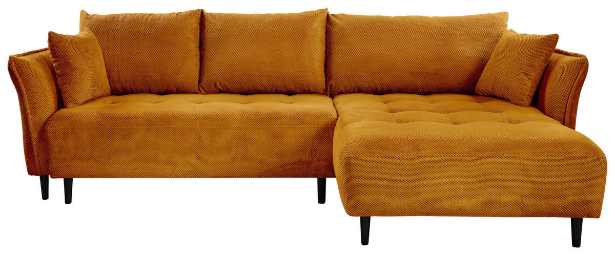 Ab auf Ihr currygelbes Ecksofa mit Chenille-Bezug und die ersehnte Me-Time total losgelöst von irgendwelchen Verpflichtungen verbringen!