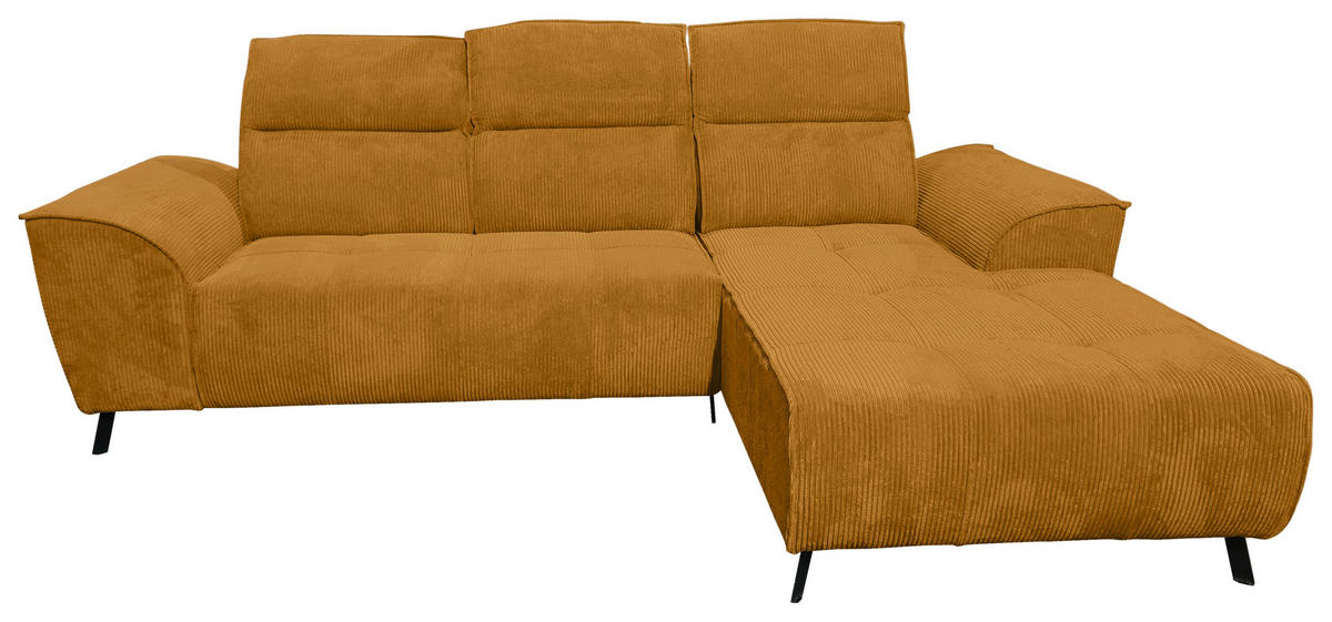 Genießen Sie Ihr Rendezvous mit der wohligen Unbeschwertheit des Seins auf diesem currygelben Ecksofa mit Cord-Bezug!