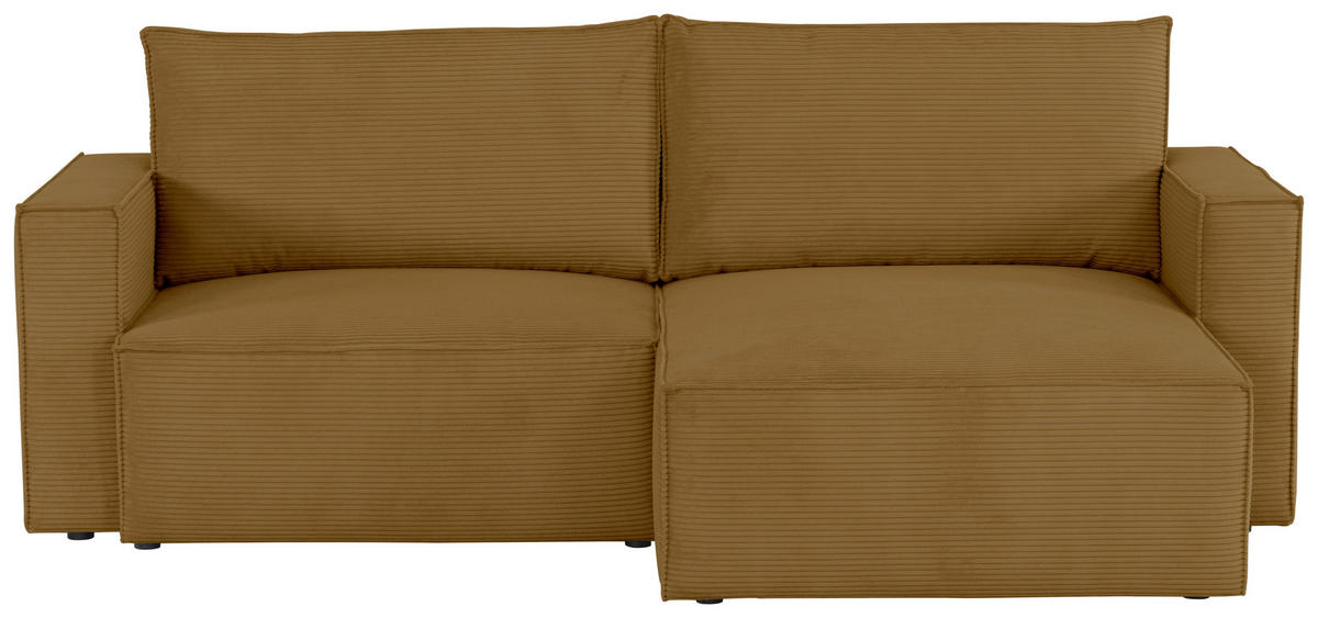 Stellen Sie mit diesem currygelben Ecksofa mit Feincord-Bezug die Weichen für Well-Being!