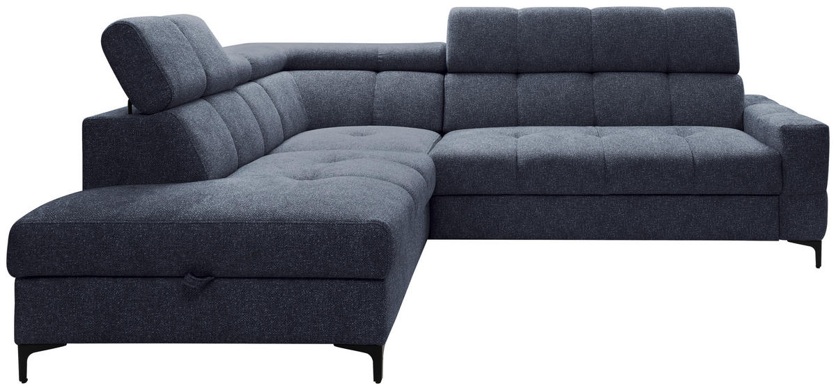 Eine Sonderportion Wohnglück schenkt Ihnen dieses dunkelblaue Ecksofa mit Struktur-Bezug. Greifen Sie zu!