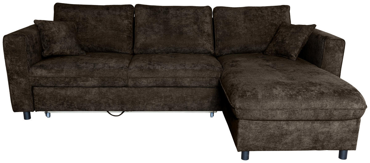 Eine Sonderportion Wohnlichkeit schenkt Ihnen dieses dunkelbraune Ecksofa mit Flachgewebe-Bezug. Greifen Sie zu!