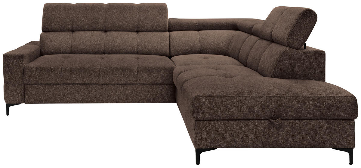 Ihr Aushängeschild, was Heimeligkeit anbelangt: ein dunkelbraunes Ecksofa mit Struktur-Bezug, das es in sich hat!