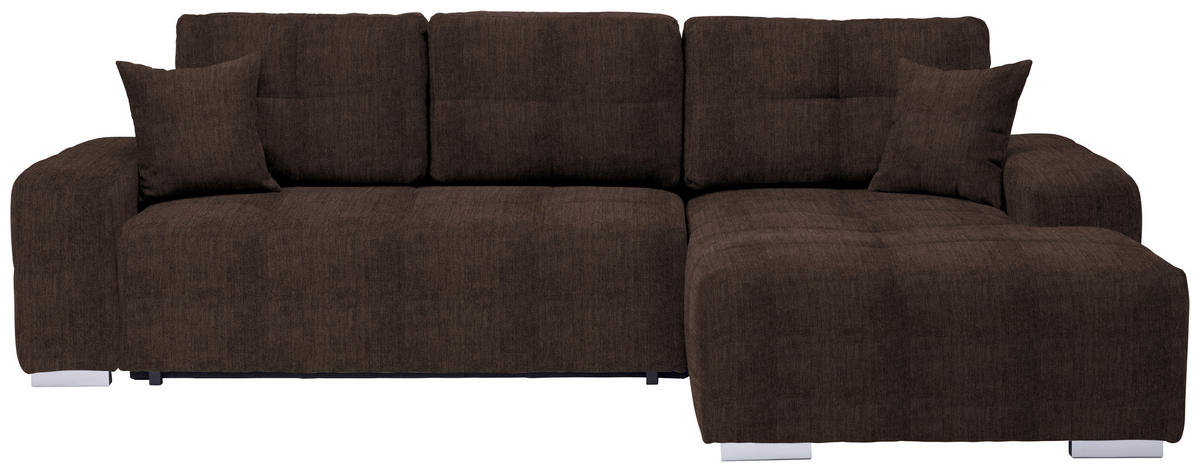 Gönnen Sie sich mit diesem dunkelbraunen Ecksofa mit Webstoff-Bezug ein famoses Upgrade für Ihr geliebtes Heim!