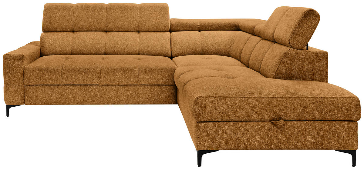 Ein dunkelgelbes Ecksofa mit Struktur-Bezug als Erfolgsgarant für Ihre Well-Being-Strategie @home!