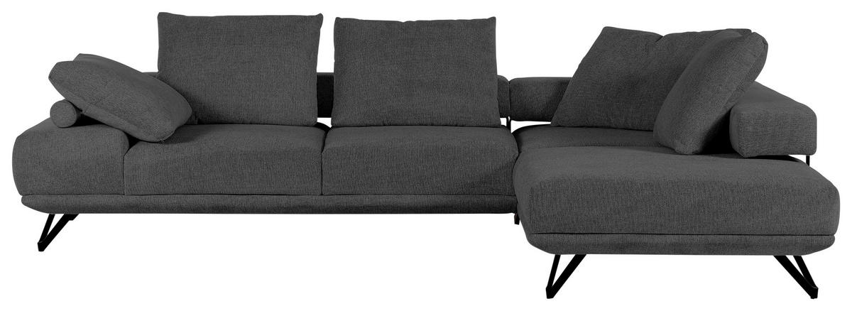 Ein Key-Piece, das Ihren Erwartungen gerecht wird: Dieses dunkelgraue Ecksofa mit Flachgewebe-Bezug tut einiges fürs individuelle Wohnglück!