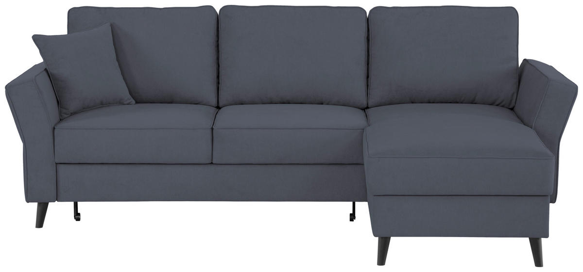 Können Sie sich etwas Besseres vorstellen als auf diesem dunkelgrauen Ecksofa mit Velours-Bezug alles um sich herum zu vergessen?