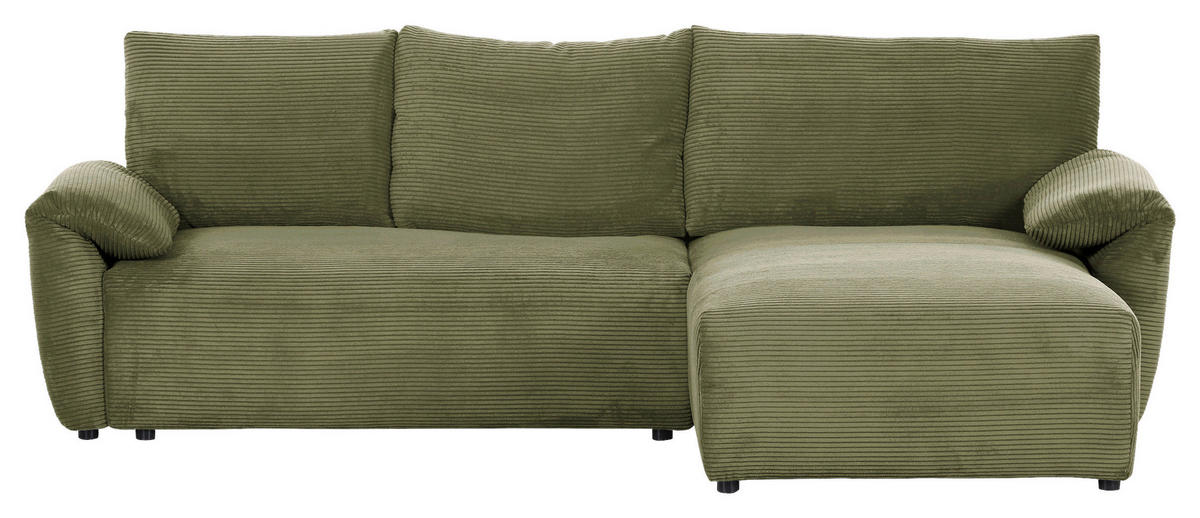 Dieses dunkelgrüne Ecksofa mit Cord-Bezug zaubert Ihnen bei jeder Gelegenheit zum Ausspannen ein Lächeln ins Gesicht!