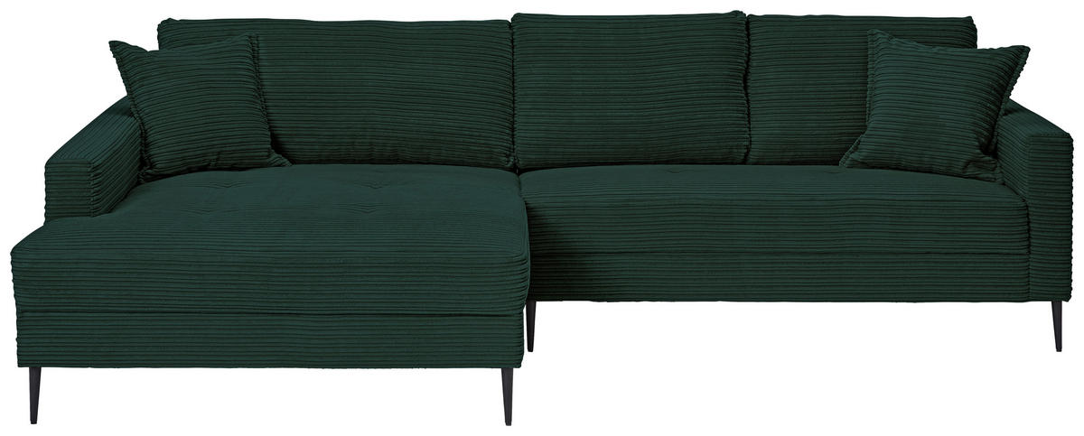 Dieses dunkelgrüne Ecksofa mit Cord-Bezug zaubert Ihnen bei jeder Gelegenheit zum Ausspannen ein Lächeln ins Gesicht!