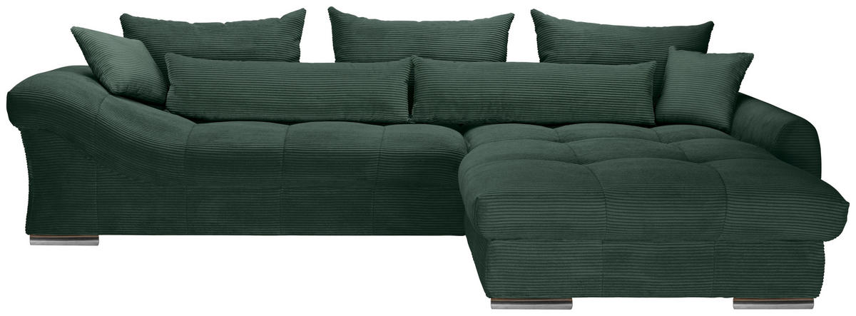 Stellen Sie mit diesem dunkelgrünen Ecksofa mit Cord-Bezug die Weichen für Behaglichkeit!