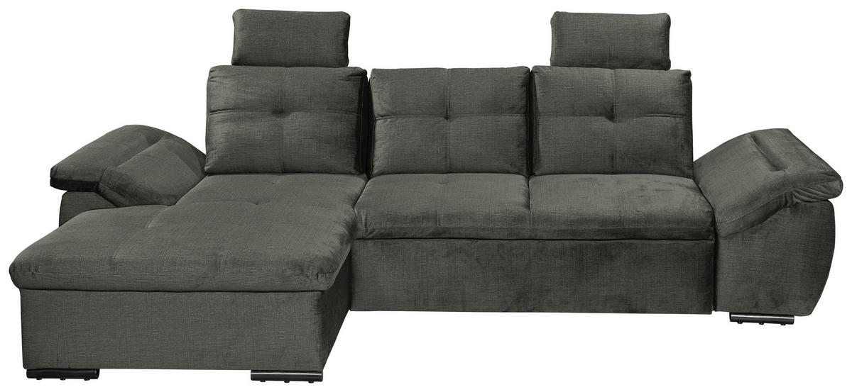 Eine Sonderportion Wohnglück schenkt Ihnen dieses dunkelgrüne Ecksofa mit Mikrovelours-Bezug. Greifen Sie zu!