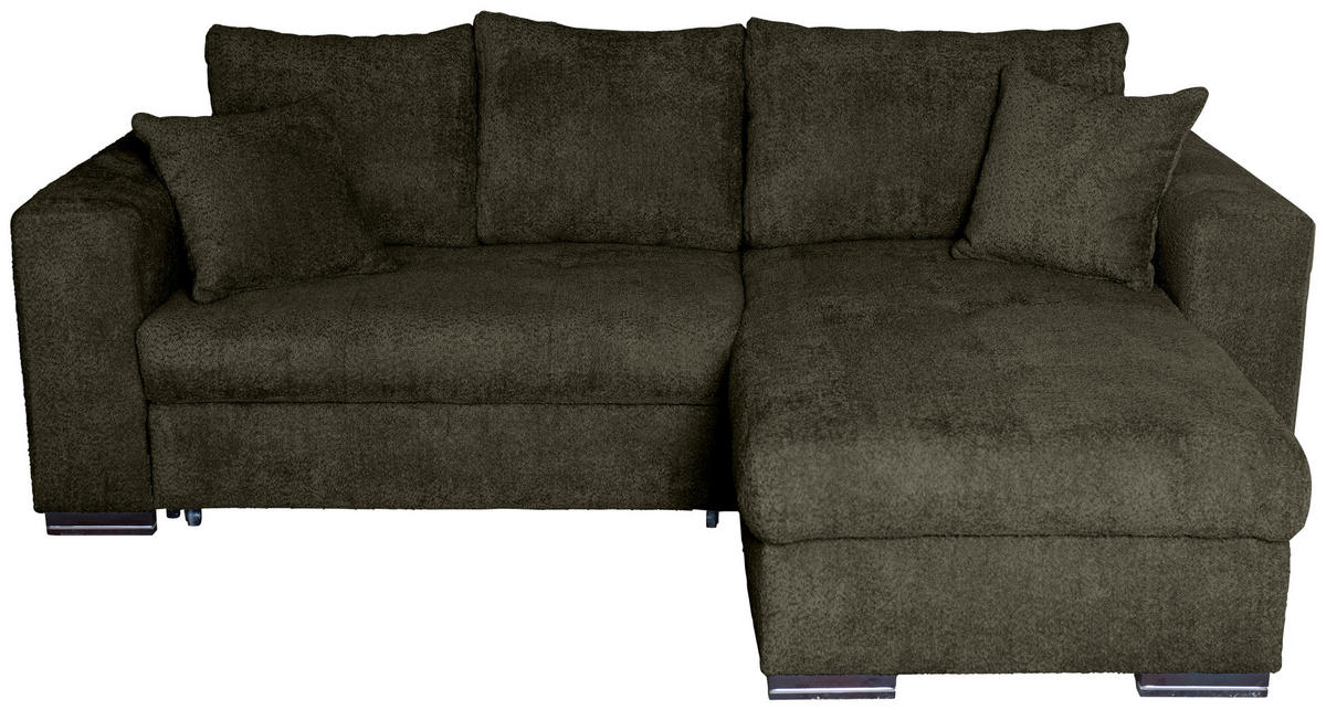 Verwöhnen Sie sich selbst mit diesem dunkelgrünen Ecksofa mit Webstoff-Bezug!