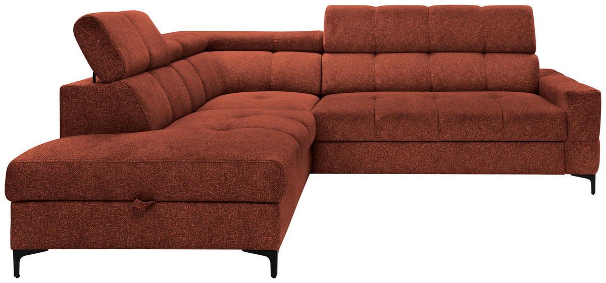 Eine Sonderportion Heimeligkeit schenkt Ihnen dieses dunkelorange Ecksofa mit Struktur-Bezug. Greifen Sie zu!