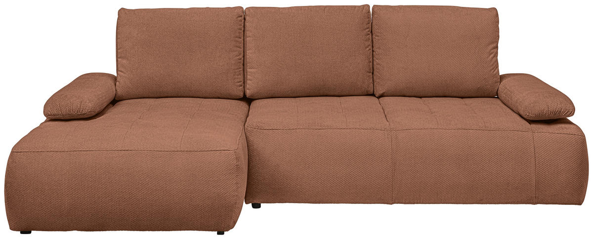 Stellen Sie mit diesem dunkelorangen Ecksofa mit Webstoff-Bezug die Weichen für Well-Being!