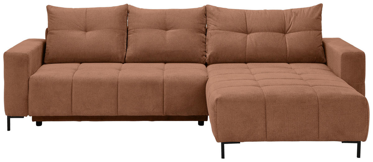 Ihr dunkeloranges Ecksofa mit Webstoff-Bezug verführt dazu, behaglich die verdiente Me-Time zu genießen!