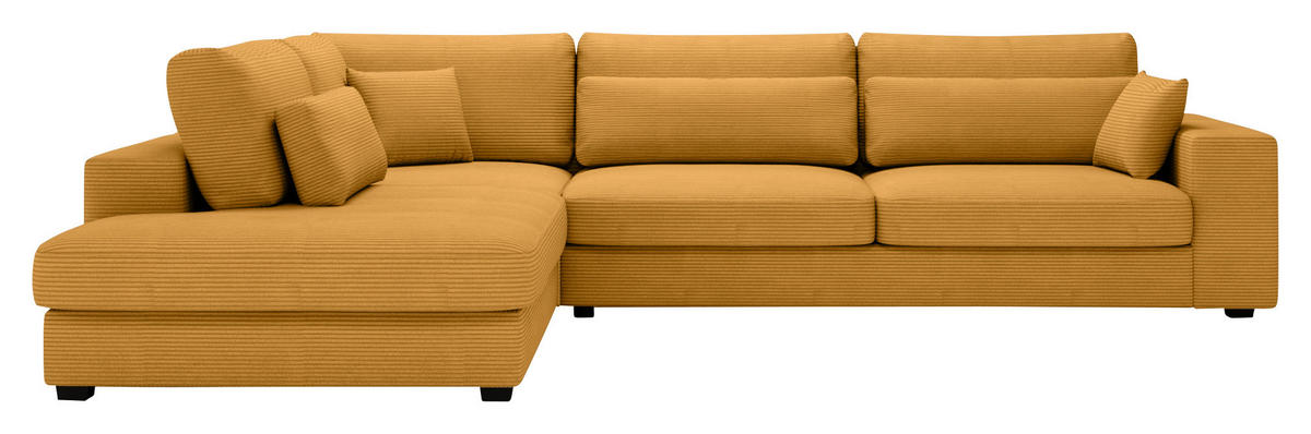 Sichern Sie sich mit diesem gelben Ecksofa mit Cord-Bezug das, was Ihnen am meisten bedeutet, wenn sich alles um das Thema Wohnglück dreht!