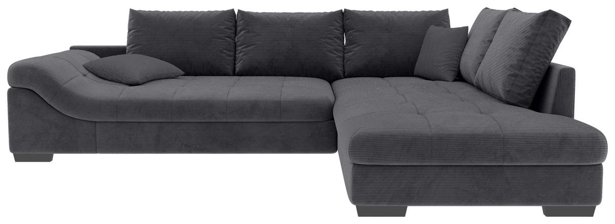 Mit diesem graphitfarbenen Ecksofa mit Cord-Bezug landen Sie auf jeden Fall einen Hit in Sachen Wohnzufriedenheit!