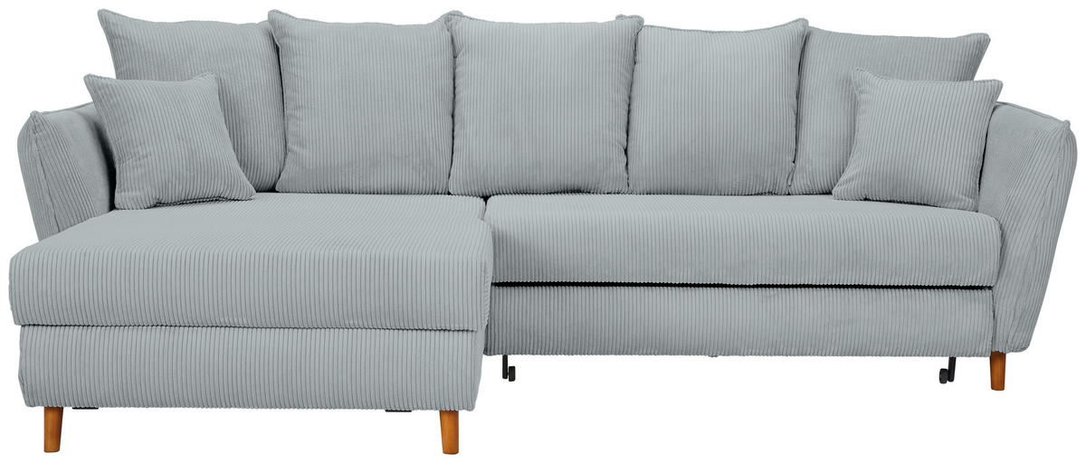Wo eine behagliche Life-Balance und häusliches Wohlempfinden gefragt sind, führt an diesem grauen Ecksofa mit Cord-Bezug kein Weg vorbei!