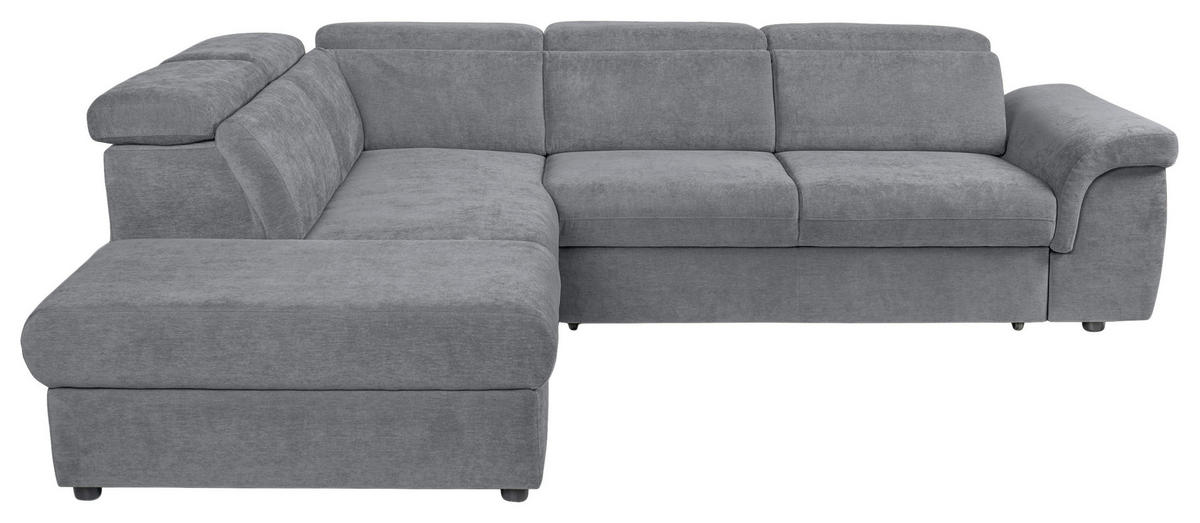 Ihr graues Ecksofa mit Flachgewebe-Bezug verführt dazu, behaglich die verdiente Me-Time zu genießen!
