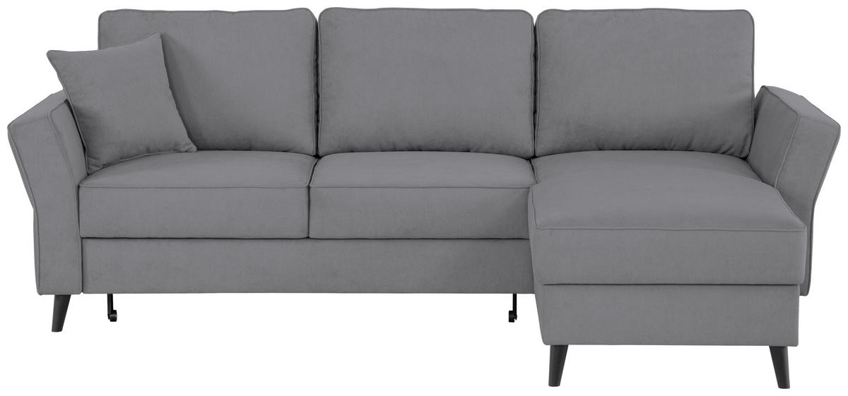 Wenn dieses graue Ecksofa mit Velours-Bezug bei Ihnen einzieht, dreht sich alles um Behaglichkeit!