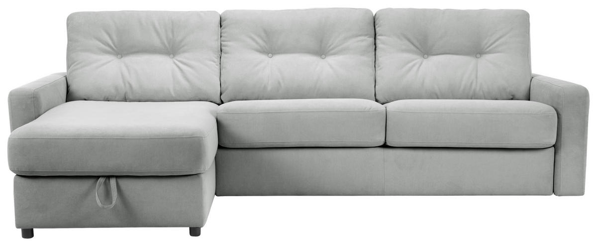 Ihr Aushängeschild, was Wohnlichkeit betrifft: ein graues Ecksofa mit Webstoff-Bezug, das es in sich hat!