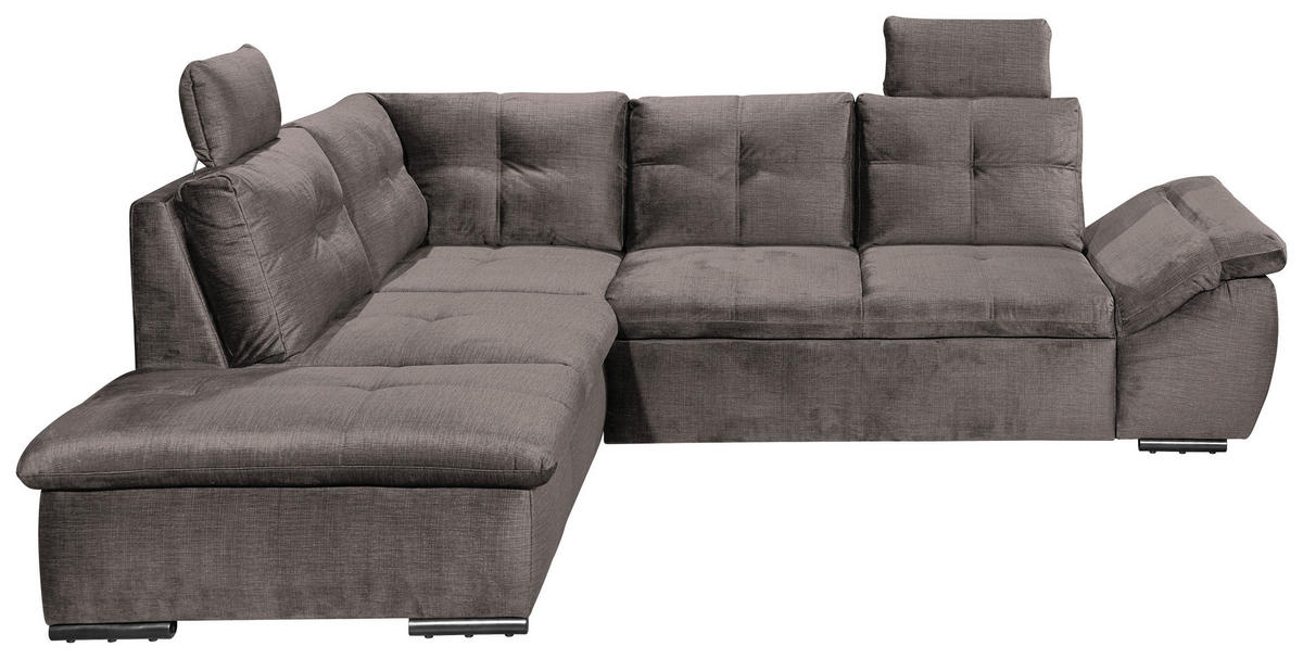 Ein It-Piece, das Ihren Erwartungen gerecht wird: Dieses graubraune Ecksofa mit Mikrovelours-Bezug tut einiges fürs individuelle Wohnglück!