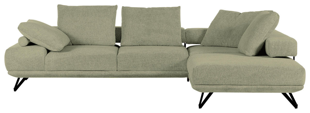 Als treue Begleitung für wonnige Time-outs daheim gesellt sich dieses grüne Ecksofa mit Flachgewebe-Bezug gerne zu Ihnen!
