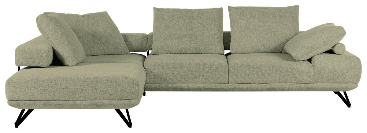 Genießen Sie Ihr Rendezvous mit der wohligen Unbeschwertheit des Seins auf diesem grünen Ecksofa mit Flachgewebe-Bezug!